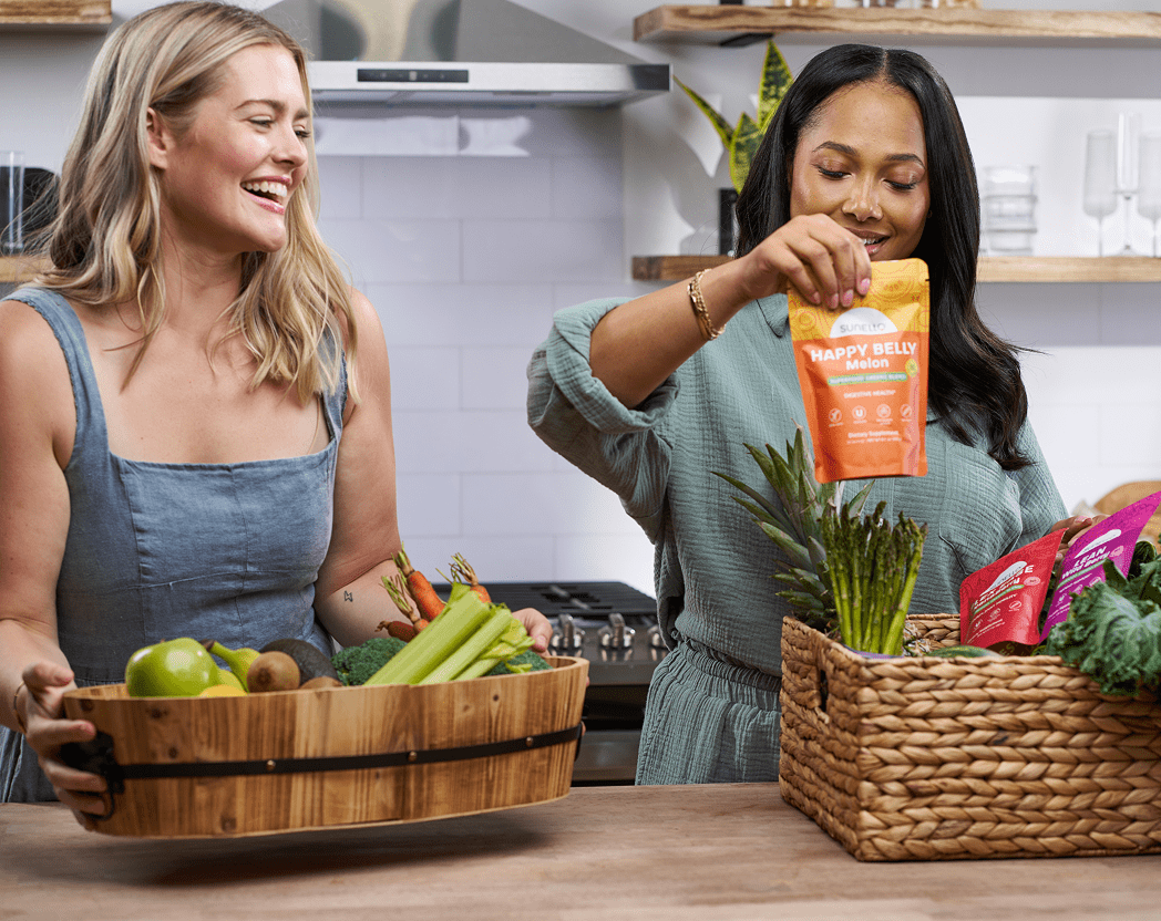 Feel lighter and more balanced from within. Happy Belly blends spirulina, alfalfa, and green tea leaf to nourish your microbiome, reduce bloating, support regular digestion, and ease inflammation. It’s a clean, feel-good ritual with a crisp melon flavor that tastes like a treat.